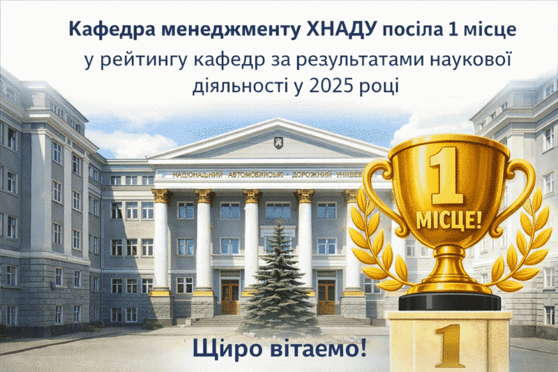 Кафедра менеджменту зайняла І місце в рейтингу кафедр ХНАДУ з наукової діяльності університету в 2025 році