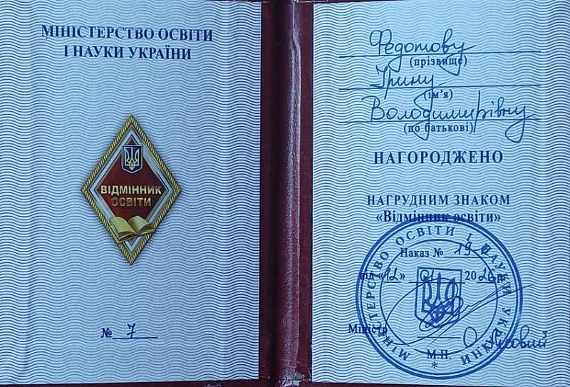 12 січня 2026 року Міністр освіти і науки України Оксен Лісовий ухвалив рішення про відзначення нагрудним знаком «Відмінник освіти» професора, доктора економічних наук Ірину Федотову та