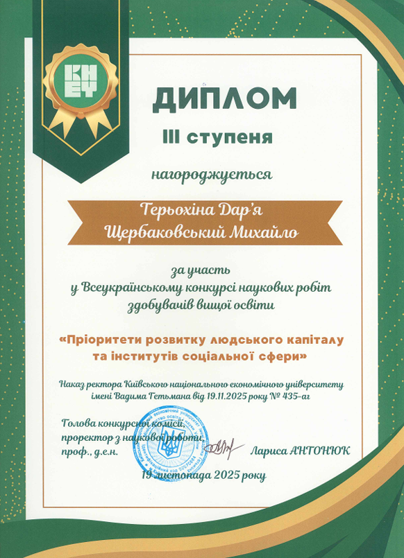 Результати участі студентів у Всеукраїнському конкурсі наукових робіт