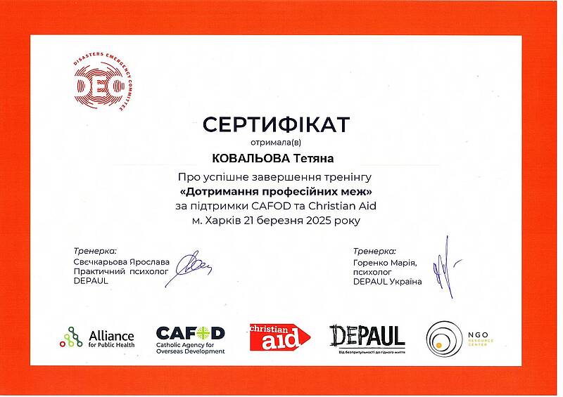 Тренінг сприяє підвищенню професійного рівня з дотриманням професійних меж, що є критично важливим в сучасних умовах.