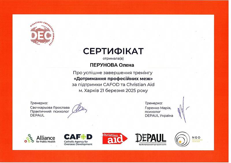 Тренінг відбувся завдяки командній співпраці Depaul Україна з партнерами CAFOD, Christian Aid, Альянсом громадського здоров’я та Ресурсним центром НДО, які відзначають критичну важливість розвитку професійних навичок та зростання фахівців, особливо в умовах воєнного часу. На цьому заході ми мали можливість поділитися досвідом та перейняти найкращі практики та отримати цінні практичні знання та навички стосовно відстоювання особистих кордонів, вміння м'якого заперечення, врахування особистісних властивостей здобувачів, навичок говорити "ні" та ін.
