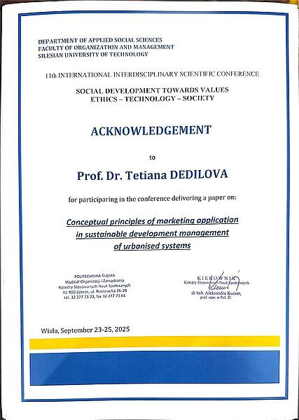 Окрім наукових виступів, працівники кафедри мали змогу долучитися до панельних дискусій, обговорити напрями подальшої міжуніверситетської співпраці, а також презентувати наукові здобутки ХНАДУ на міжнародному рівні. Формат конференції сприяв інтеграції українських науковців до європейського освітнього простору, а також підкреслив актуальність тематики сталого розвитку в умовах сучасних викликів.