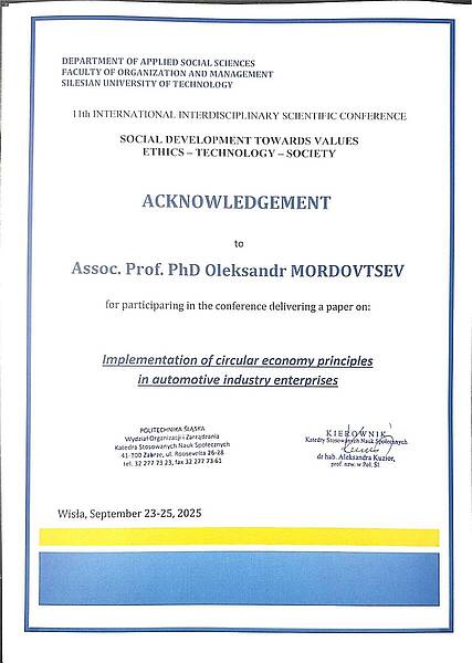 23-25 вересня 2025 року у місті Вісла (Польща) відбулася XI Міжнародна міждисциплінарна наукова конференція «Rozwój Społeczny wobec Wartości – Etyka, Technika, Społeczeństwo», організована Політехнікою Сілезькою. Цей масштабний захід об’єднав провідних науковців із Польщі, України, Словаччини, Німеччини, Великої Британії та США для обговорення міждисциплінарних аспектів сталого розвитку, етики, техніки й трансформацій сучасного суспільства.