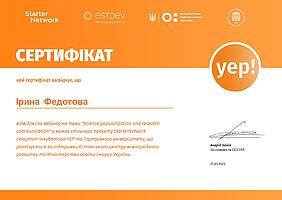 Викладачі кафедри менеджменту проф. Федотова І.В., доц. Ачкасова Л.М., доц. Бочарова Н.А. продовжують вдосконалювати свої професійні навички, взявши участь в другому вебінарі програми StarterNetwork «Популяризація науки та комунікація про дослідження», який відбувся 27 березня 2023 р. Цей вебінар, організований стартап-інкубатором YEP та Тартуським університетом з підтримкою Міністерства освіти і науки та #ESTDEV, присвячений науковій популяризації та комунікації наукових досліджень.