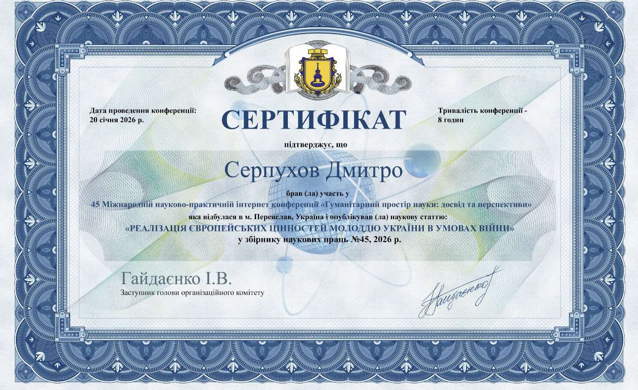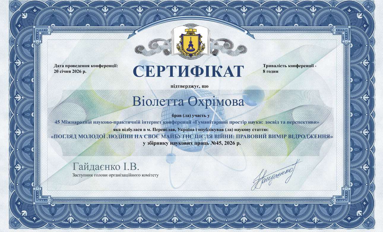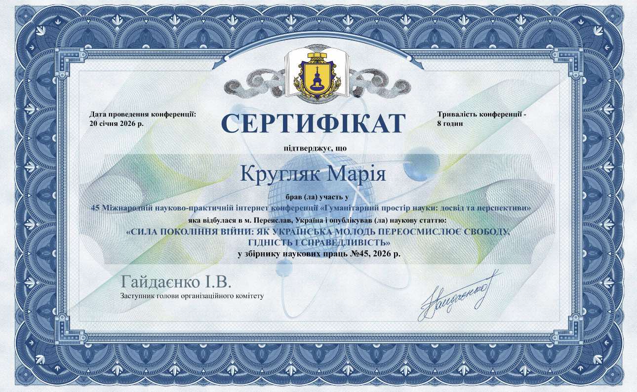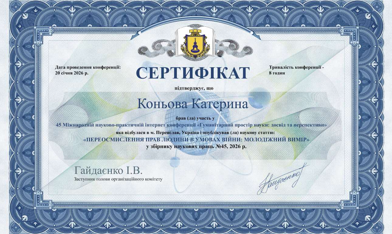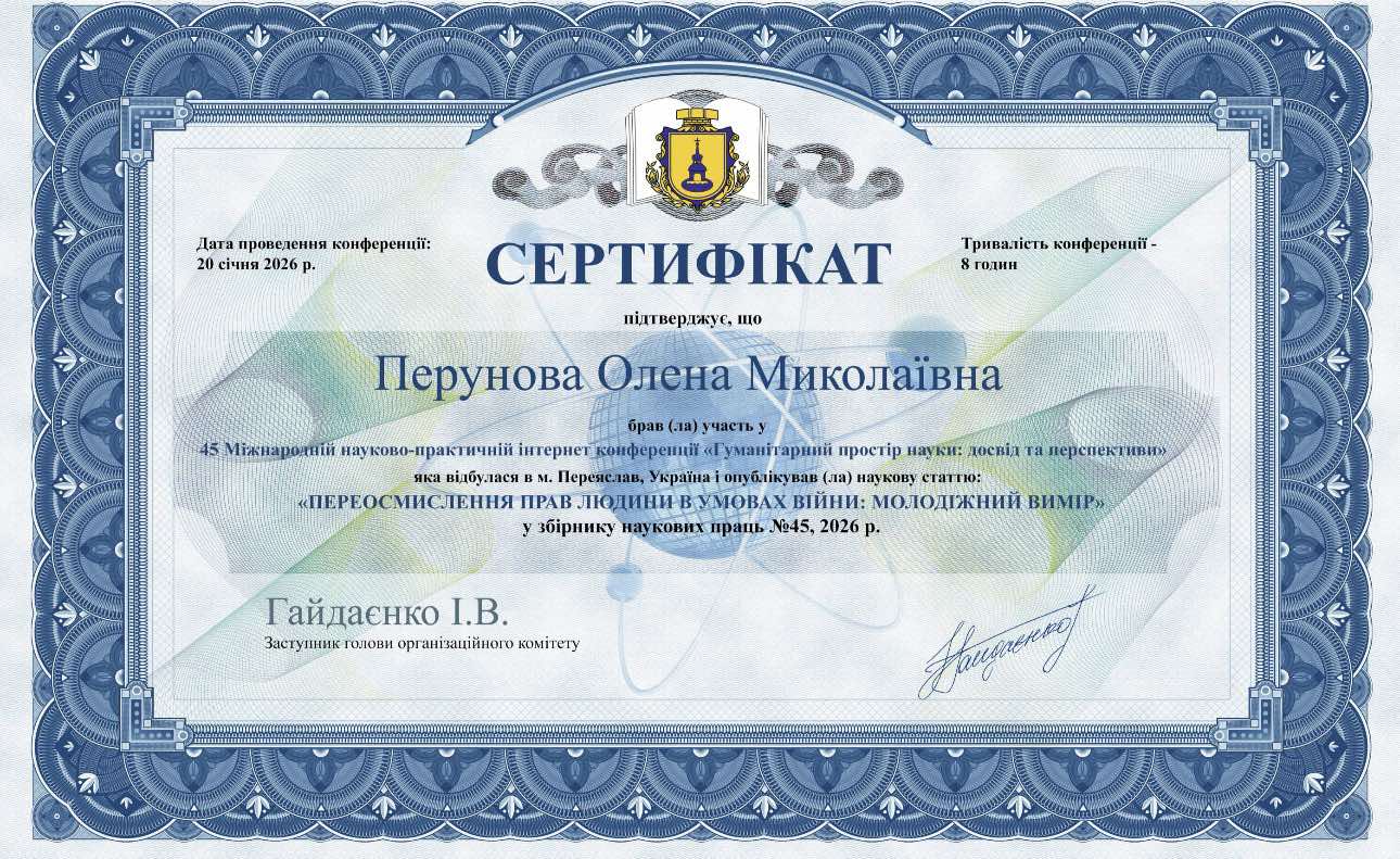 39 Міжнародна науково-практична інтернет-конференціїя"Гуманітарний простір науки: досвід та перспективи" 28.11.2023