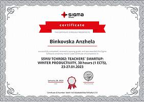 Викладачі кафедри АКІТ постійно підвищують свою кваліфікацію проходячи курси чи співпрацюючи з підприємствами-партнерами кафедри. Доценти Біньковська А.Б. і Кононихін О.С. в січні прийняли участь в курсі TEACHERS' SMART UP: WINTER PRODUCTIVITY від Sigma Software University.