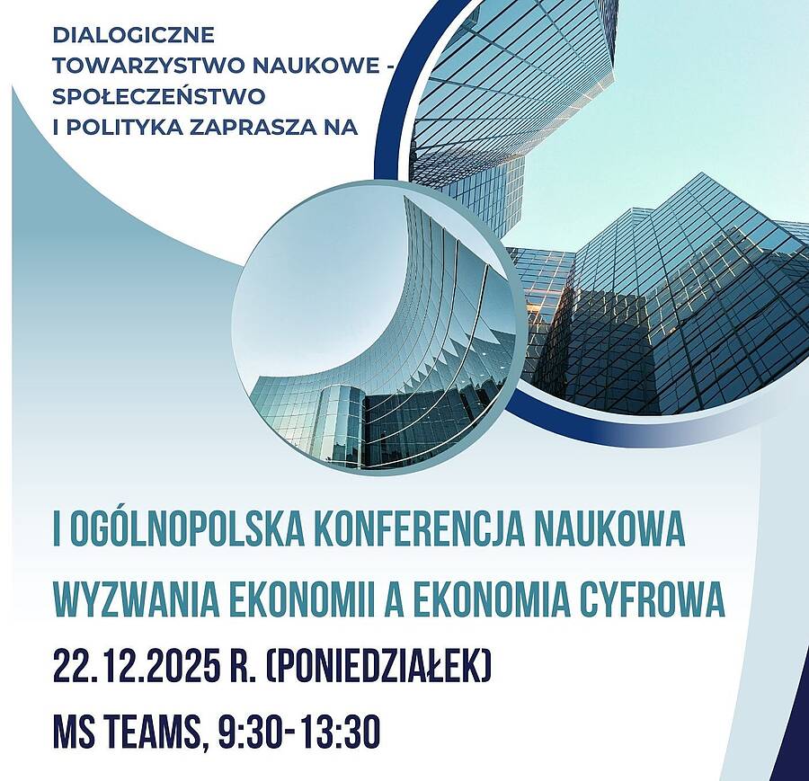 Запрошуємо студентів, аспірантів та науковців взяти участь в І Загальнопольській науковій конференції “Виклики економіки та цифрова економіка”, яка відбудеться 22 грудня 2025 року в онлайн-форматі (MS Teams). Учасники обговорюватимуть трансформації сучасної економіки, вплив цифровізації на управління, ринок праці, фінанси та інновації. Детальніше...