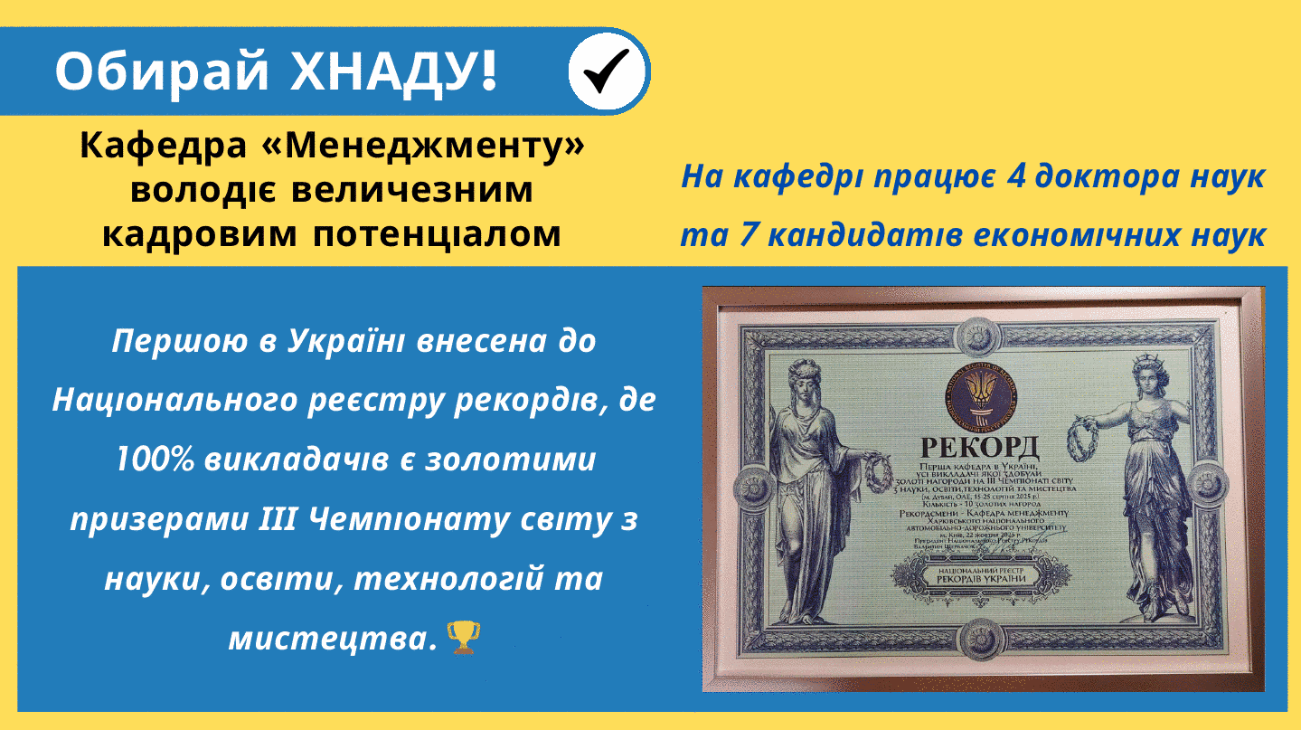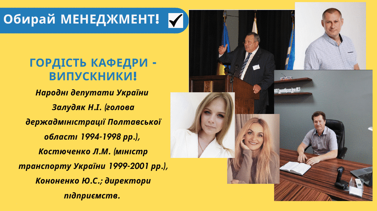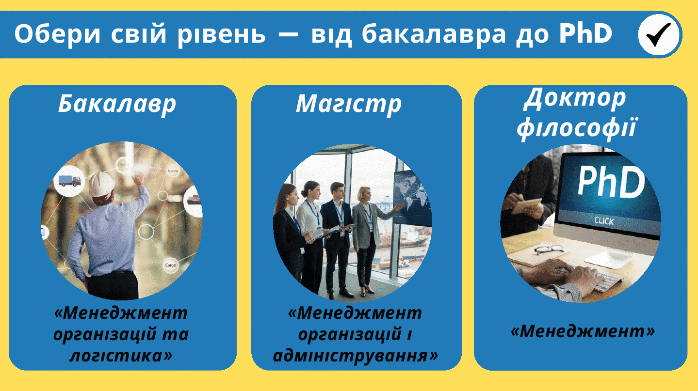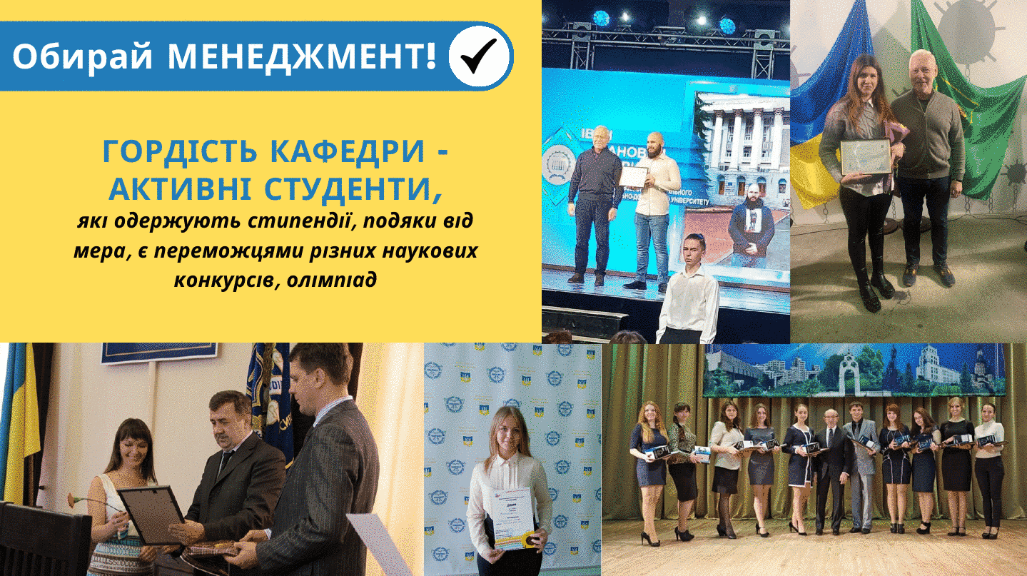 КАФЕДРА МЕНЕДЖМЕНТУ запрошує Вас на навчання за спеціальністю D3 «МЕНЕДЖМЕНТ» за освітньо-кваліфікаційними рівнями: БАКАЛАВР, МАГІСТР, ДОКТОР ФІЛОСОФІЇ та D5 "МАРКЕТИНГ" за освітньо-кваліфікаційним рівнем БАКАЛАВР