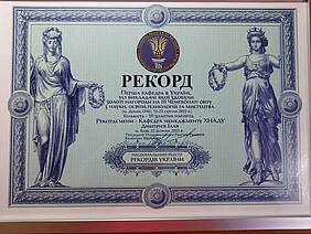 Підтвердженням рекорду став офіційний сертифікат Національного реєстру рекордів України, підписаний Президентом Валентином Щербачовим.