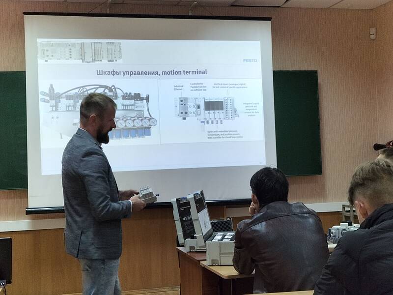 Випускник кафедри Петінов Євген Володимирович, керівник Харківського представництва ДП " Festo " прочитав лекцію про сучасні технічні засоби автоматизації, тенденції розвитку систем автоматизації, проблеми та перспективи розвитку систем автоматизації в Україні. Також Євген Володимирович надав свої бачення щодо удосконалення освітніх програм першого та другого рівня освіти.