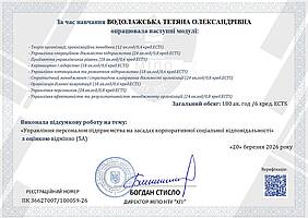 Отримані результати підвищення кваліфікації мають практичне значення для подальшого вдосконалення освітнього процесу на кафедрі менеджменту. Зокрема, набуті знання та компетентності планується інтегрувати у навчальні дисципліни управлінського циклу, з акцентом на сучасні концепції менеджменту, стратегічне мислення та ефективне прийняття управлінських рішень.
